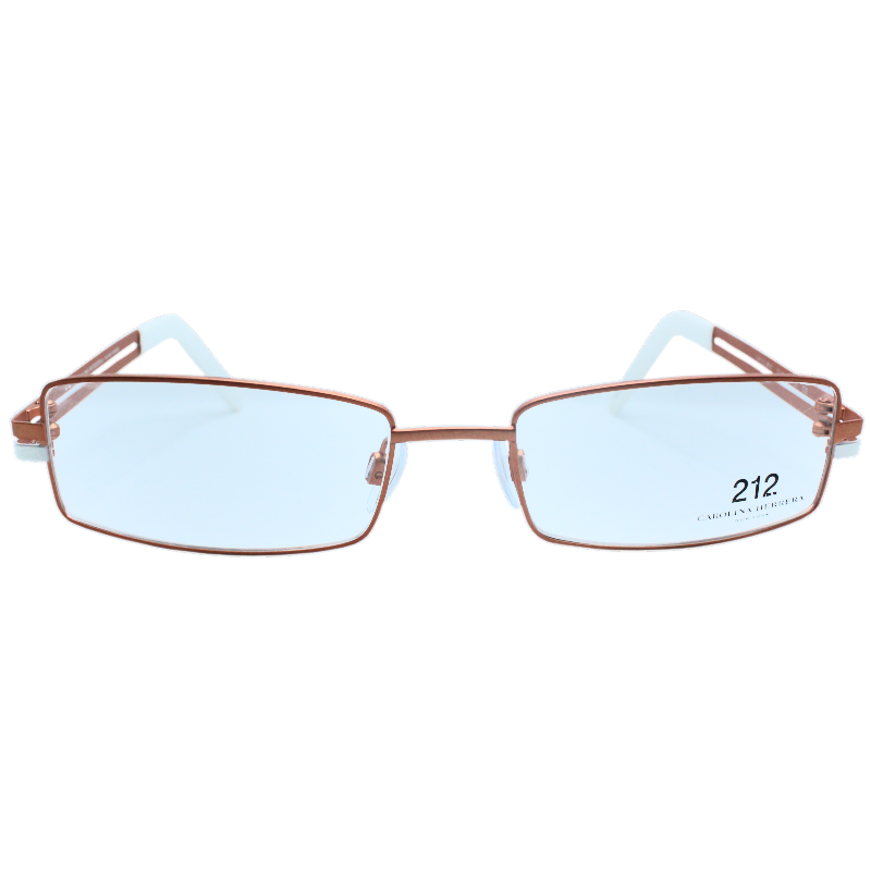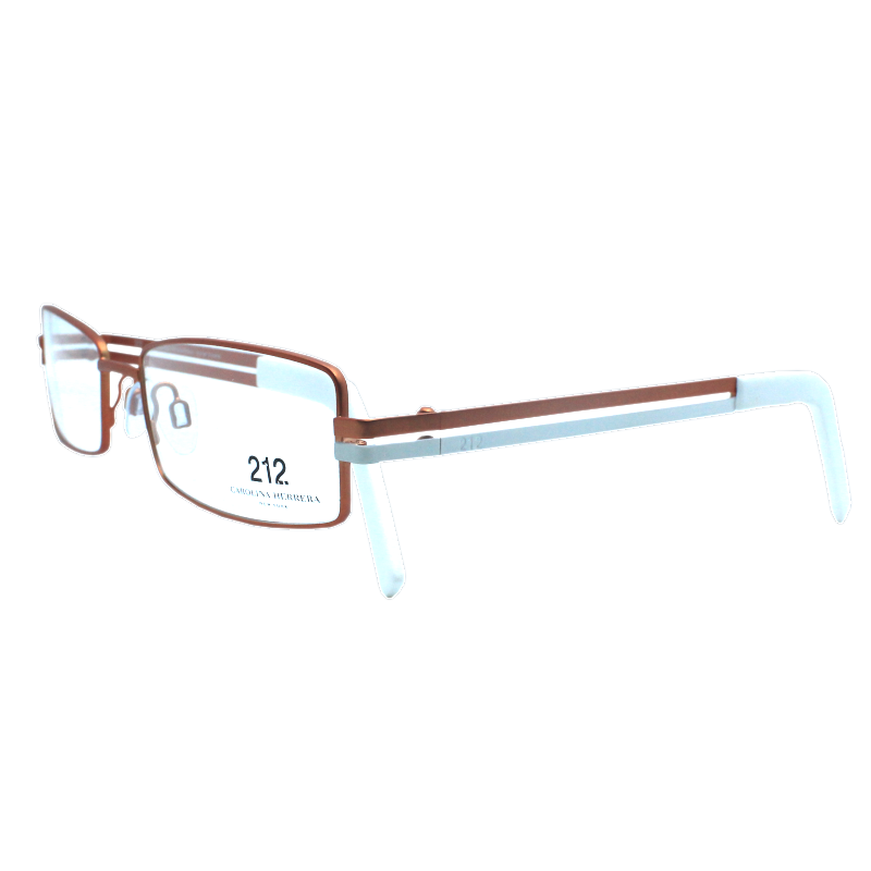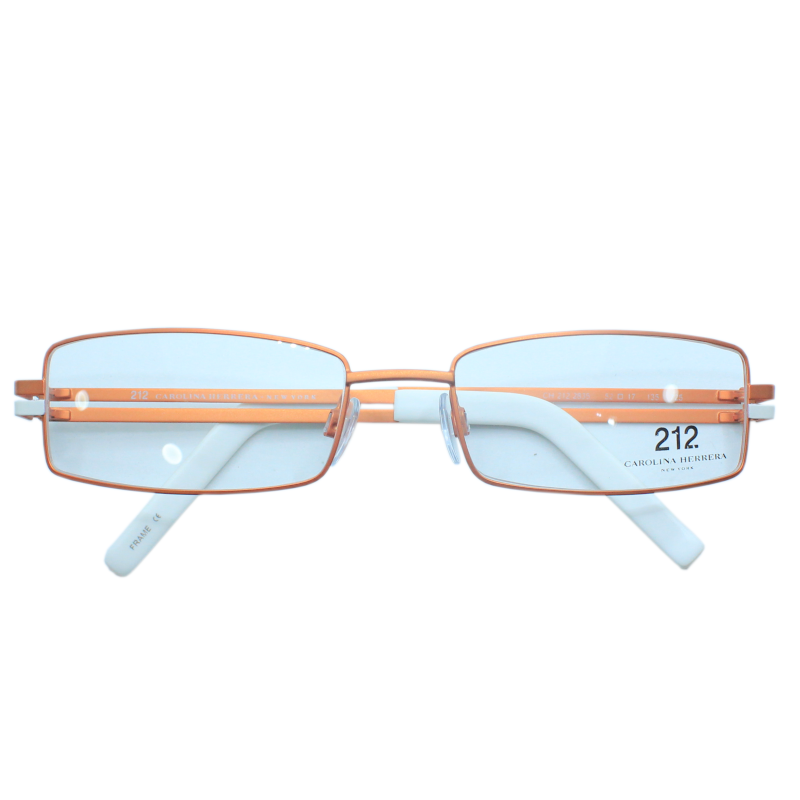 El modelo 212 de Carolina Herrera es una gafa de metal en color naranja, con varillas doble metálica en color naranja y blanco con logo de la firma 212. Una gafa rectangular ideal para cualquier graduación y con una combinación de colores fresca y juvenil.